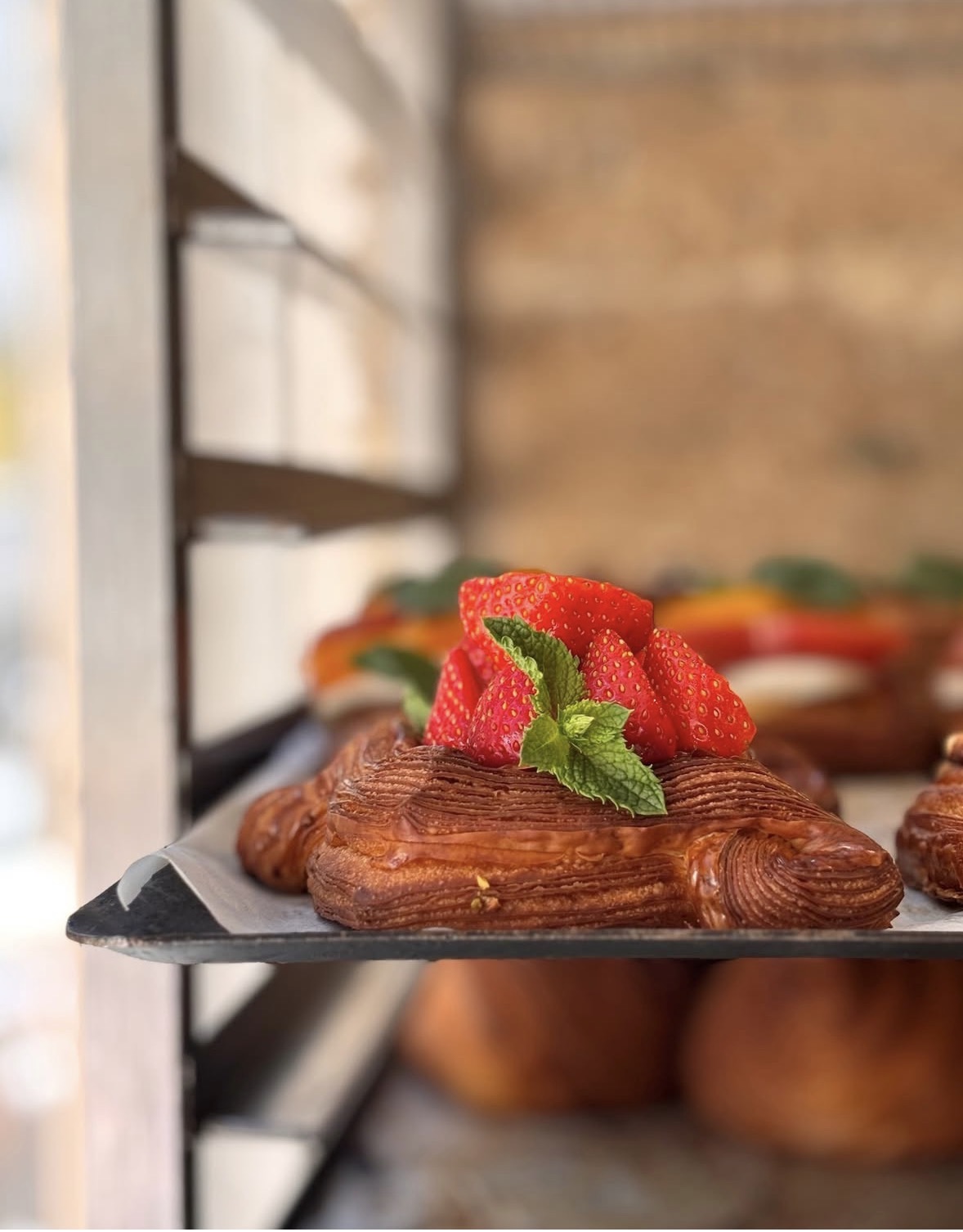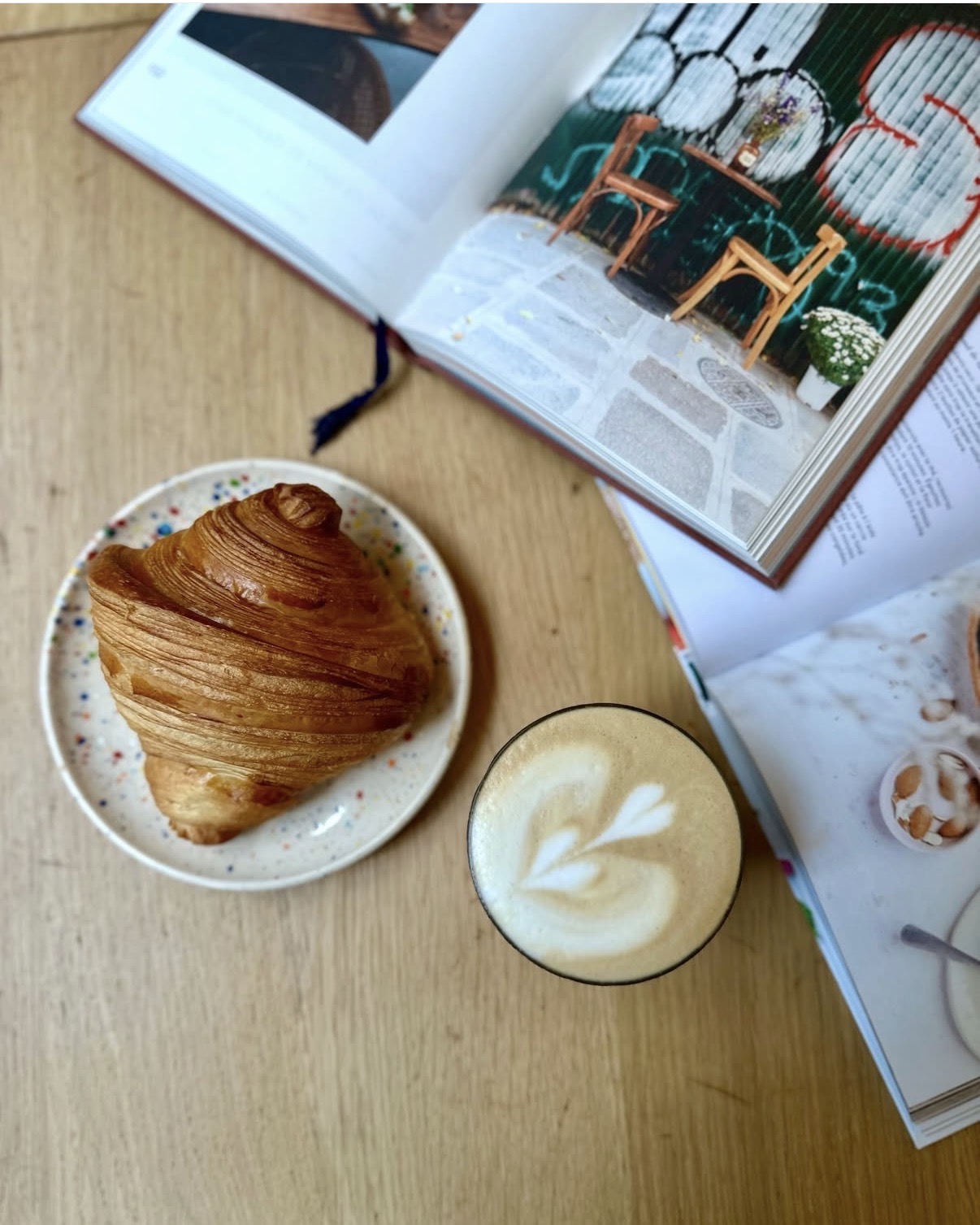 Sandwich parisien briochée toasté / Cafés torréfiés par @cafelomi / Marzocco locos / Croissants et viennoiseries faites maison tous les jours avec amour / Flan praliné vanille-pécan incontournable / Tarte feuilletée salée de saison / Spécialités de Latte / Bonnes playlists / Croissant salé jambon fromage / Roulé pomme-cannelle / Lait Fraise / Chocolat chaud chamallows / Meilleur carrot cake EVER / Grande salade de saison / Café chantilly / Jus d’agrumes pressé minute / Fondant chocolat sarrasin, servi avec boule de glace sarrasin / Flan vanille pécan (inclus dans le Flan Tour @foudepatisserie @nodietclub) / Croque brioche et comté / Good vibes / Dogs & cats friendly / Computers OK !