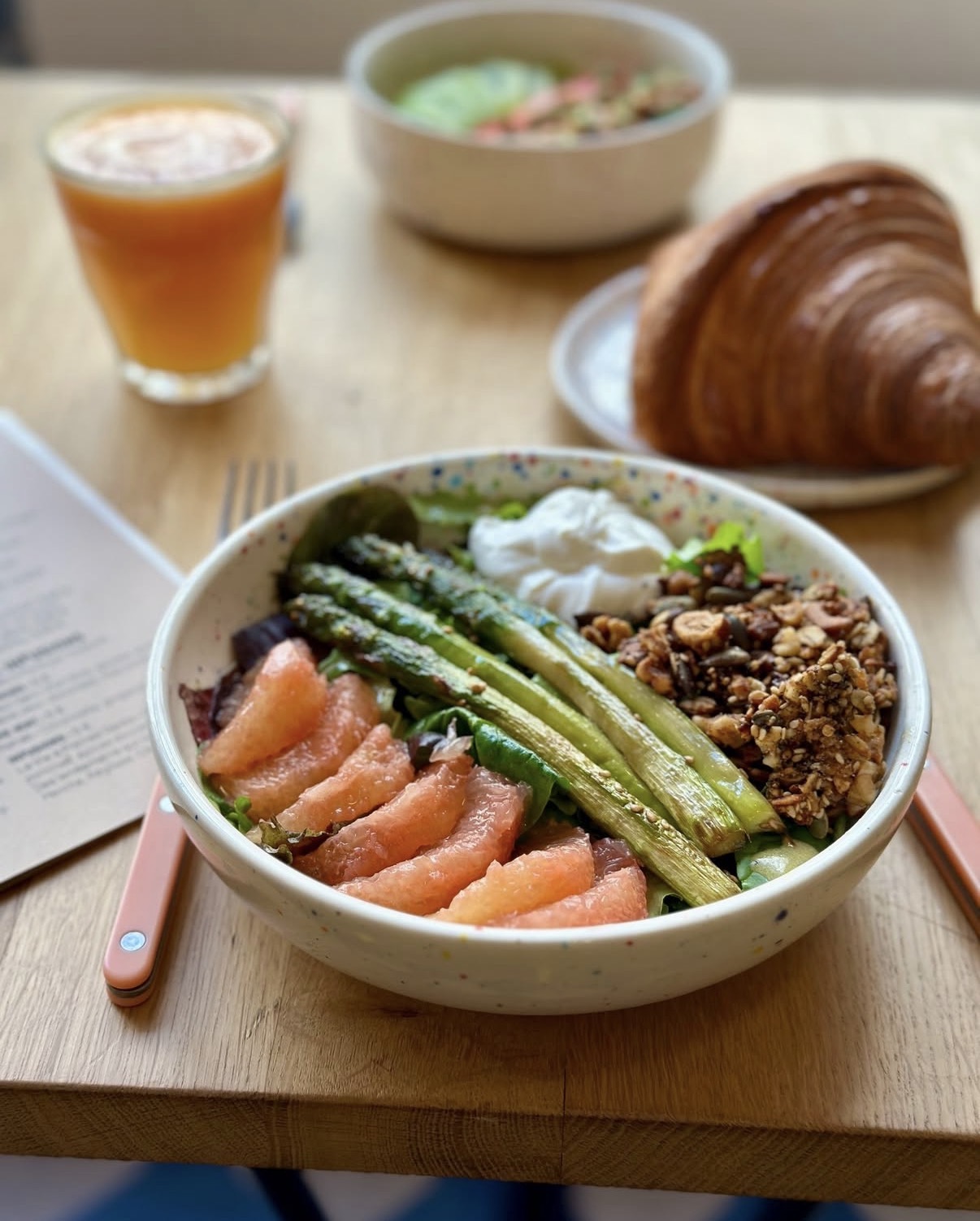 Sucré et salé / Carte déjeuner de saison / Service continu continu continuuuuu / Brunch à toute heure / Iconique Sandwich brioché toasté / Produits sourcés de saison / De la Chantilly / Tarte feuilletée salée / Croque au coté brioché toasté / Granola salé et Granola sucré / Croissant jambon fromage / Recettes glacées en été / Velouté chantilly en hiver / Madeleines à la fleur d'oranger / Épicerie fine et vaisselle confettis / Shake / Cookies noir pécan / Petit-déjeuner à toute heure ...