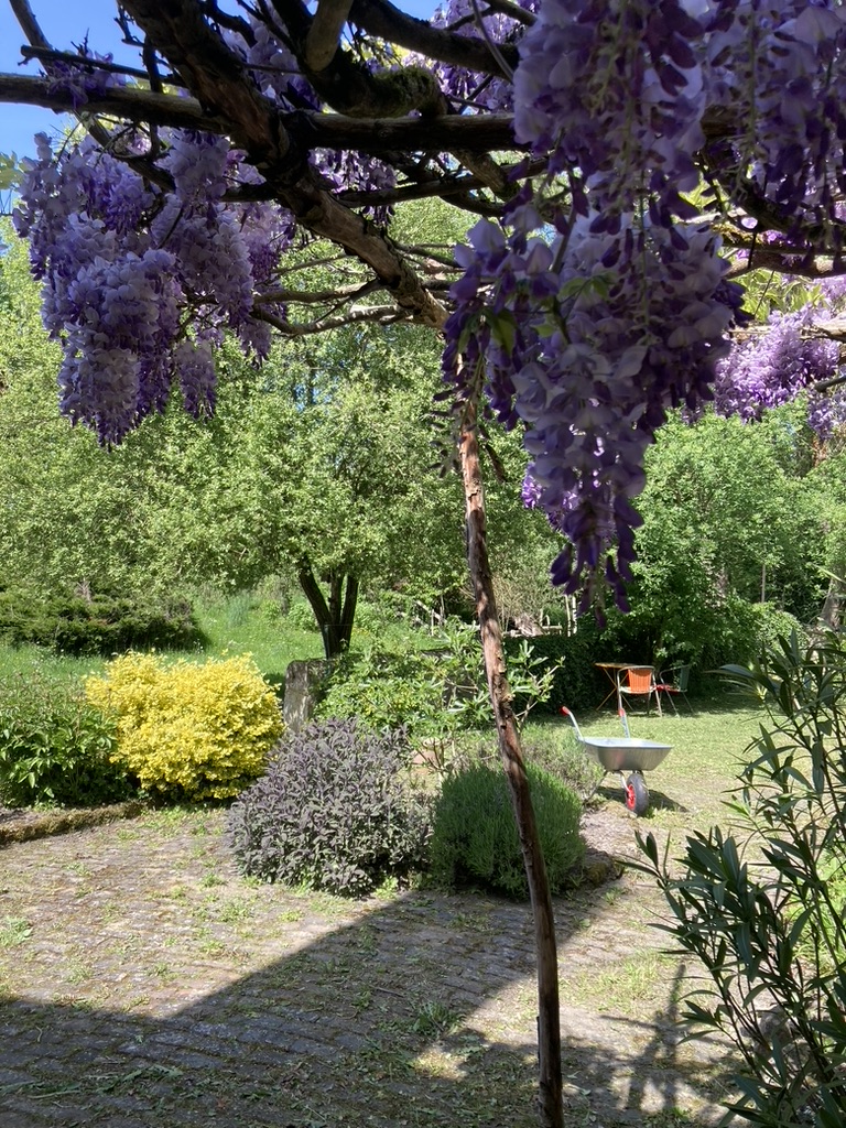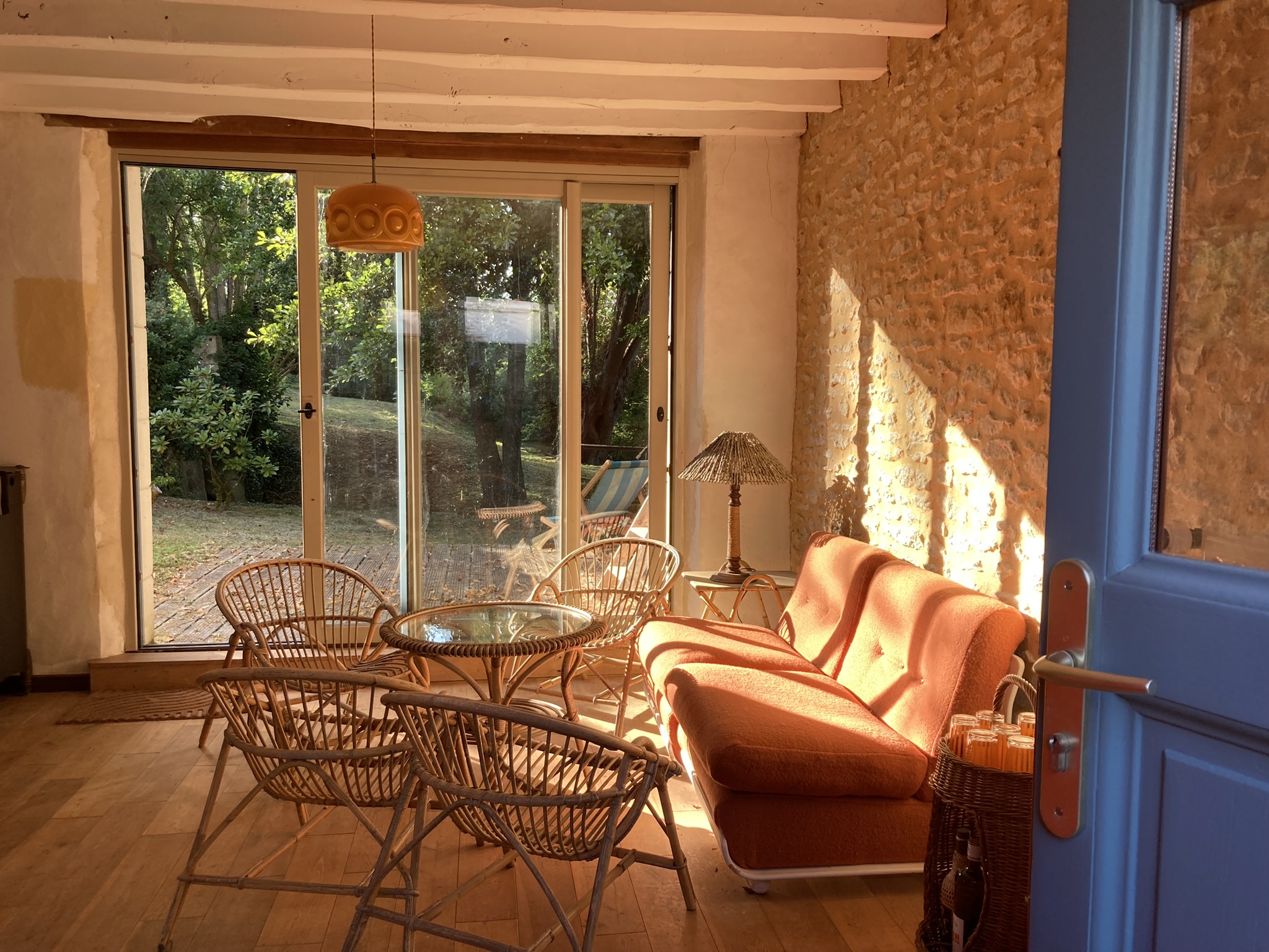 Une cuisine festive avec une grande bibliothèque culinaire, un grand jardin au milieu duquel coule une rivière, des confettis dans les tiroirs, une cheminée les jours de pluie et une piscine aux beaux jours, 12 couchages de qualité, des salons pour partager des moments comme nulle part ailleurs et danser.